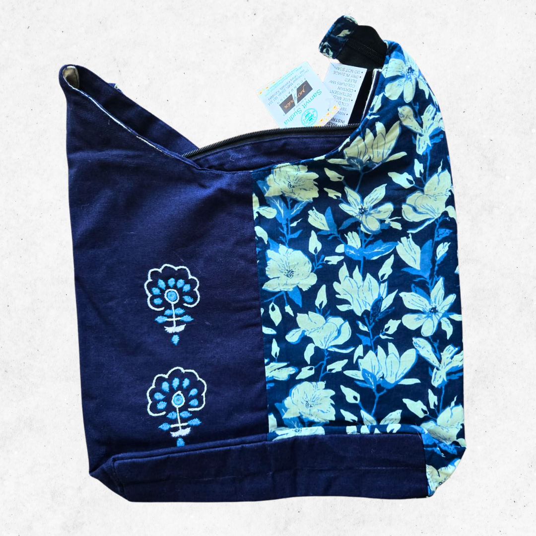 The Jhola is a timeless Indian essential. This eco-friendly cotton bag, featuring hand-embroidered motifs inspired by Yin-Yang, is perfect for everyday use. Available in three colours, it's both stylish and sustainable. Every purchase supports rural women.